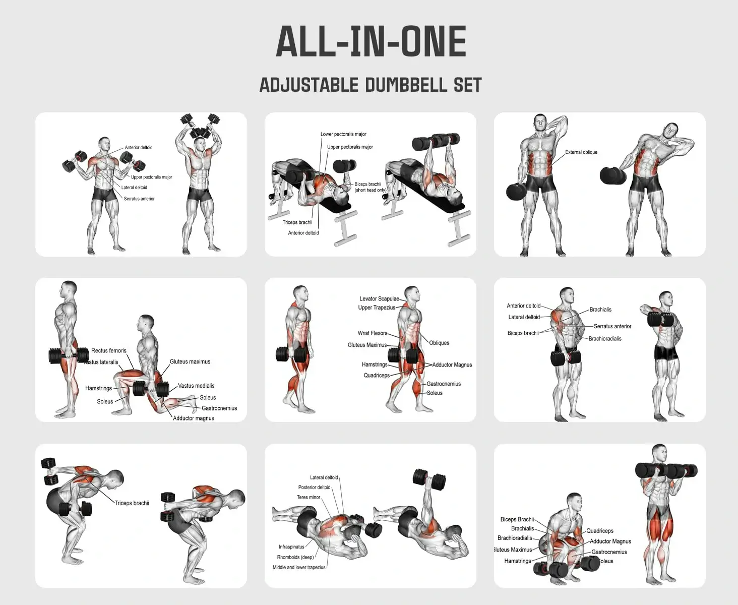- Ideal for curls, triceps extensions, dumbbell rows, and more.