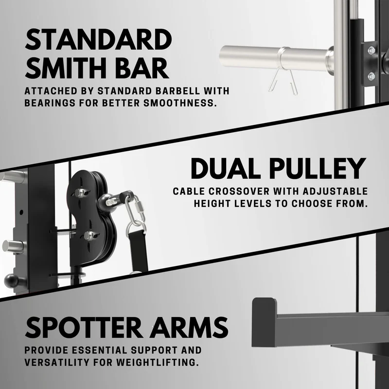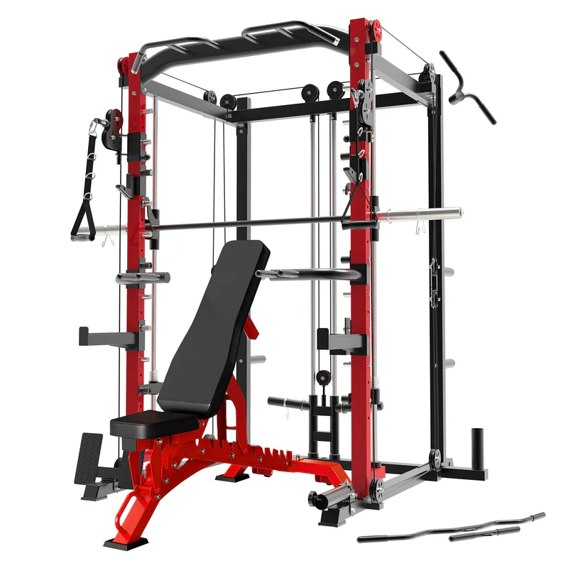Built for long-lasting use, the Functional Trainer’s durable steel construction ensures it remains strong even during the most intensive workouts. Its sleek black and red design complements any home or garage gym setting. This functional trainer smith machine is the ultimate solution to overcoming workout plateaus and will elevate your fitness routine to the next level.