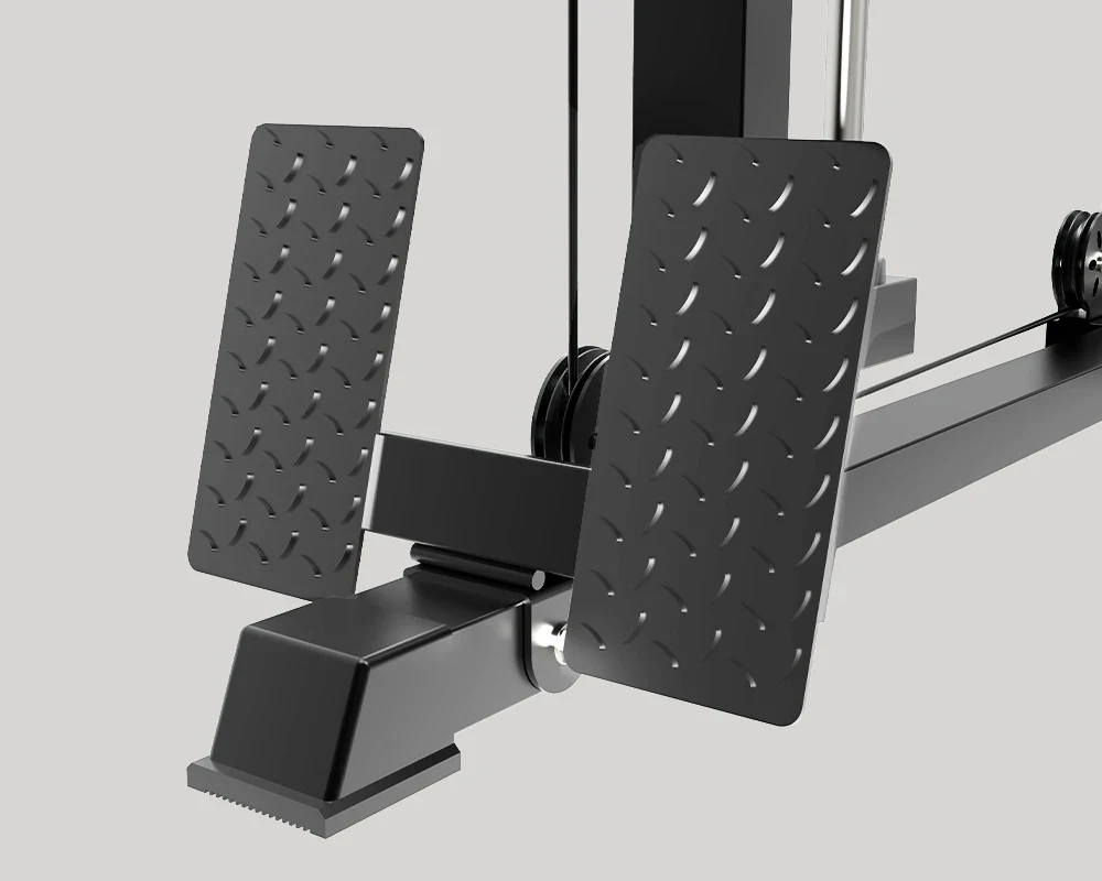 Featuring stable foot pedals for exercises such as seated rows, it targets upper body muscles to enhance posture, balance, and overall body strength.