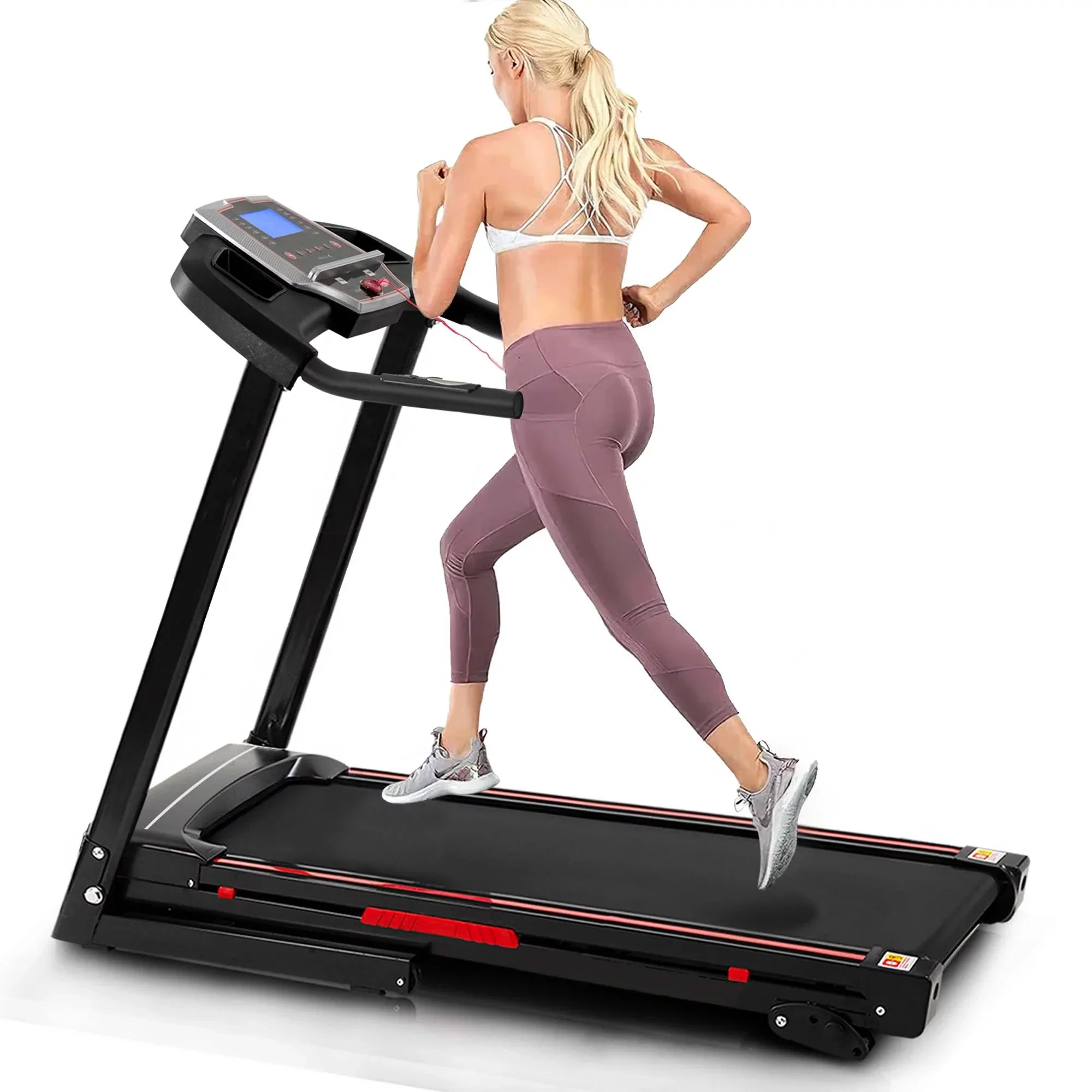 Just a reminder to wear your running shoes when using the foldable treadmill, whether you’re walking, running, or sprinting. The treadmill can be intense, so the right footwear will protect your joints by absorbing impact with each step.