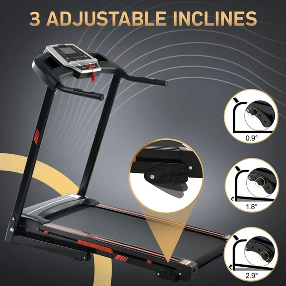 The 3-stage incline foldable treadmil offers a customizable incline angle.