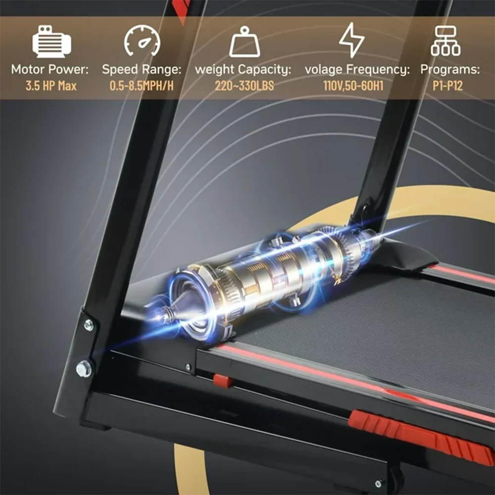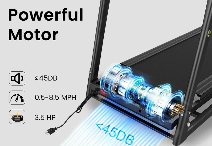 - Comes with a 3.5 HP quiet motor, supports speeds from 0.5 to 8.5 MPH, and can hold up to 300 lb weight.