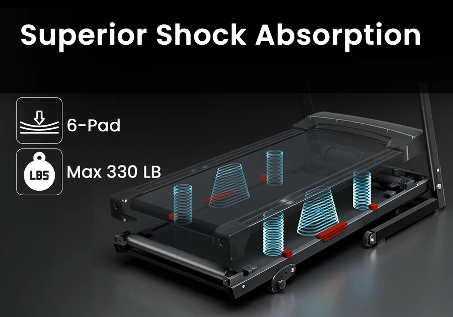 Built to support up to 330 lbs, our treadmill’s heavy-duty frame provides reliable performance and long-lasting use. The wear-resistant surface of the running belt ensures durability, allowing you to push your limits confidently.