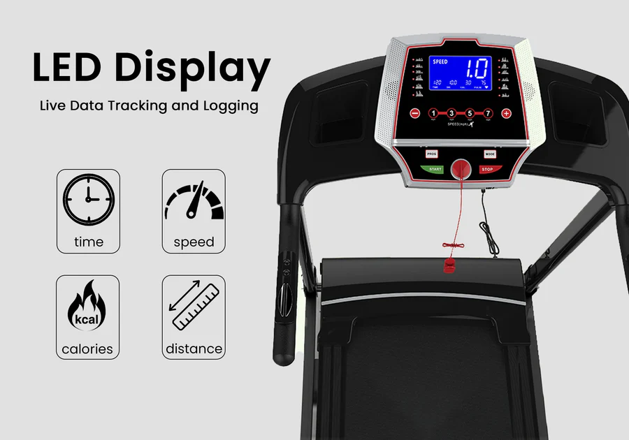 This multi-functional LED screen provides real-time updates on time, speed, distance, calories burned, and heart rate, ensuring you stay informed throughout your workout.